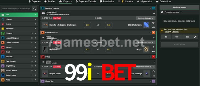 O 99i bet oferece uma grande seleção de opções de apostas em e-sports com probabilidades competitivas
